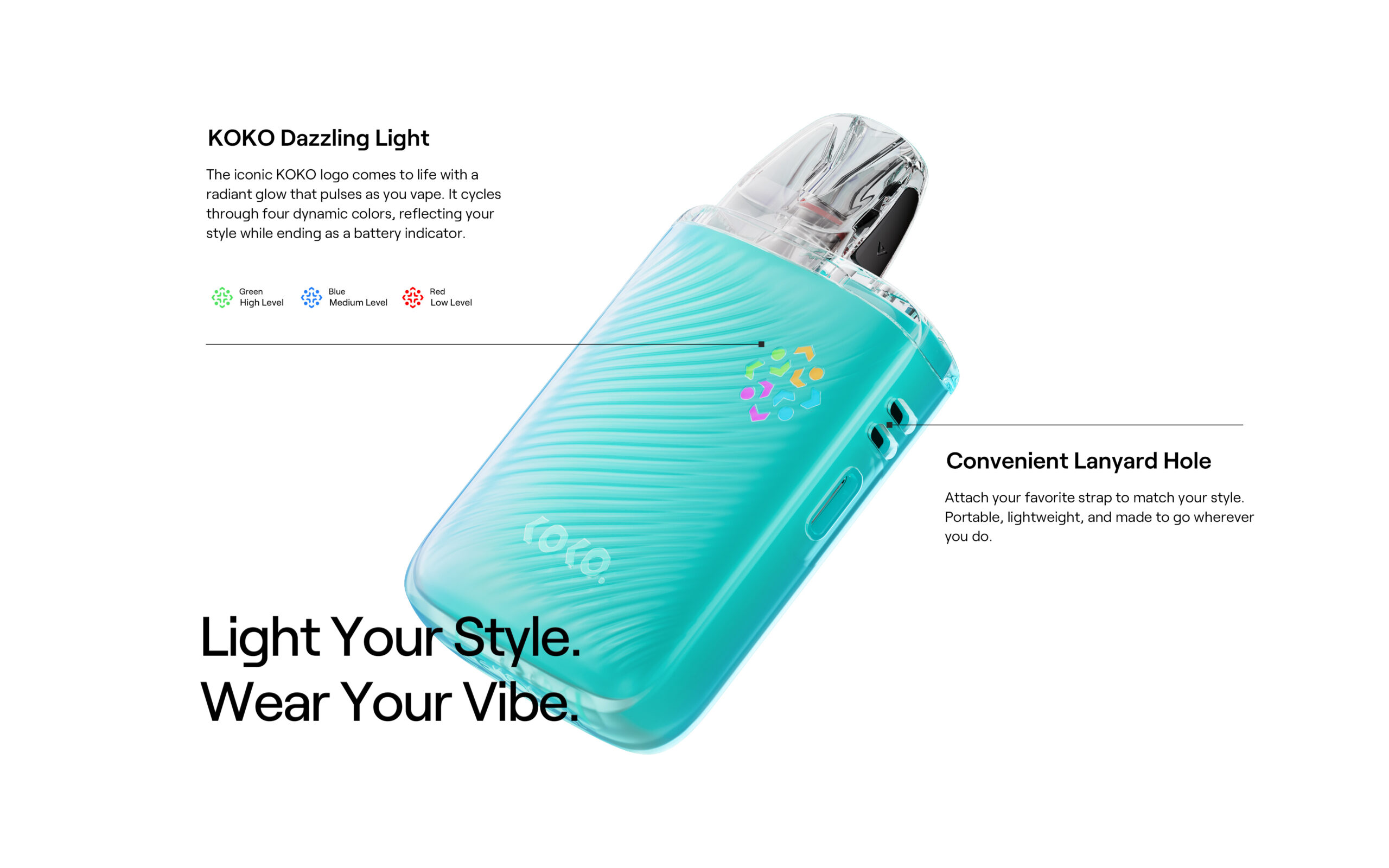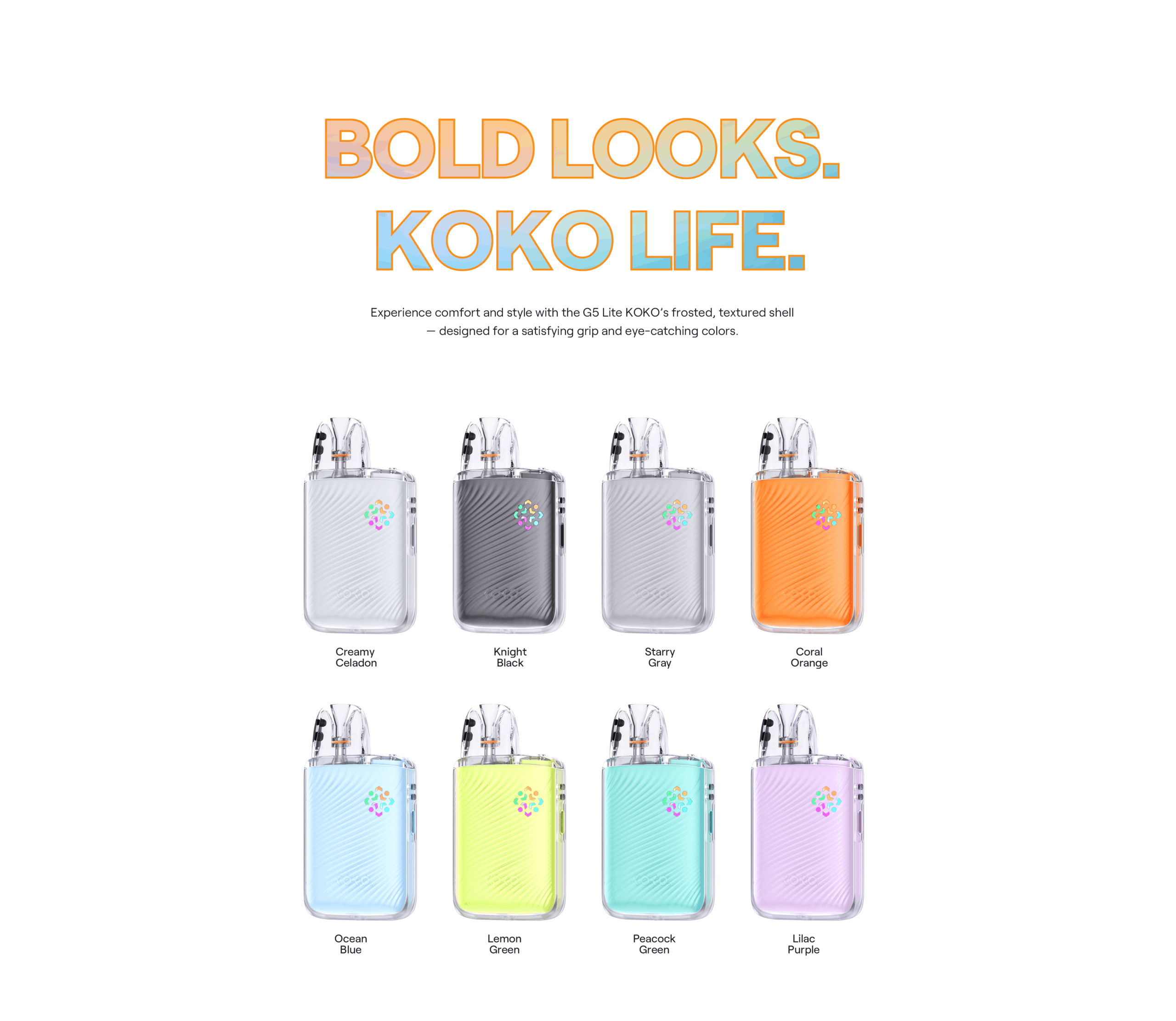 - Compact KOKO-style body with a matte, frost-finish exterior