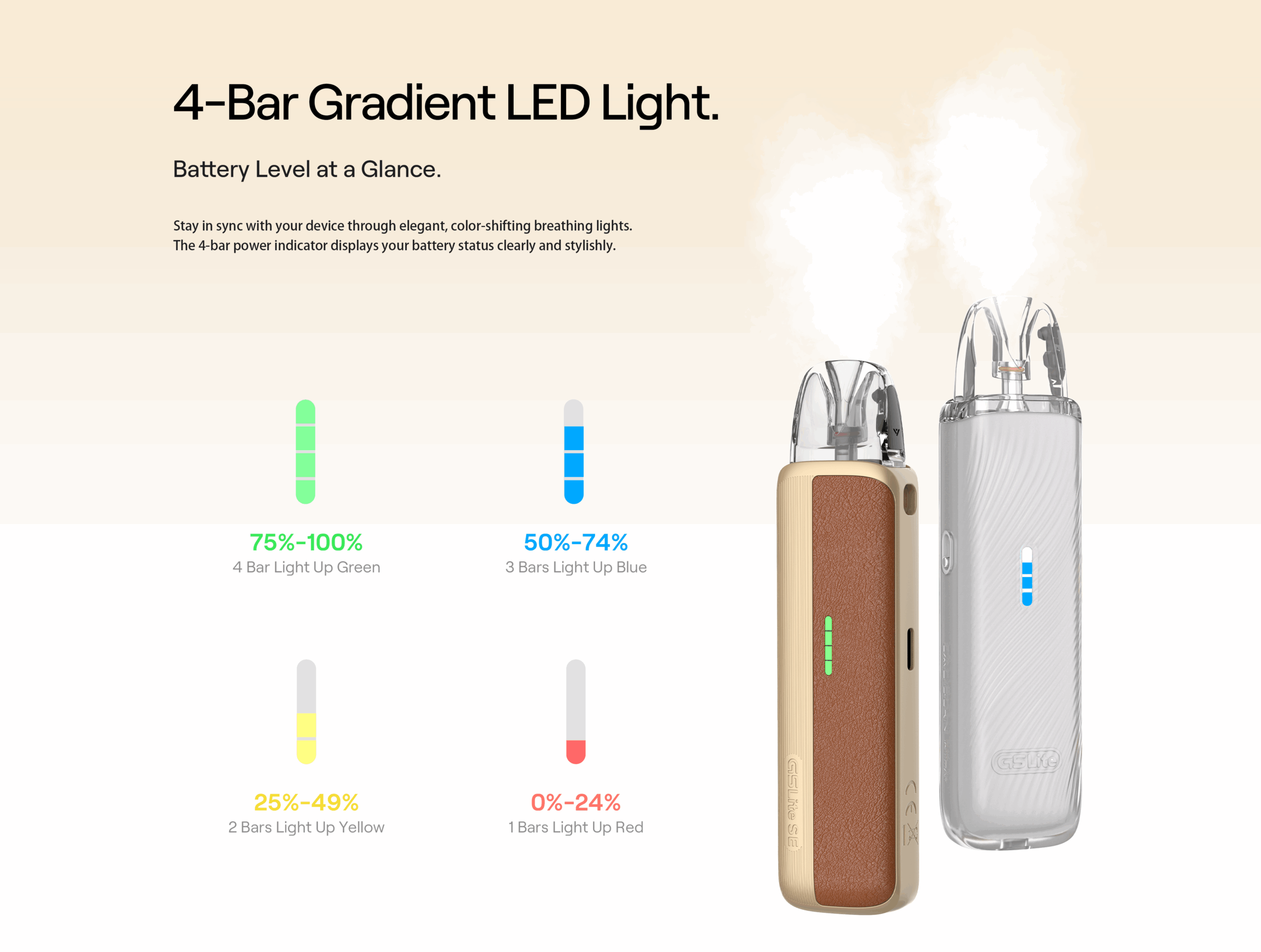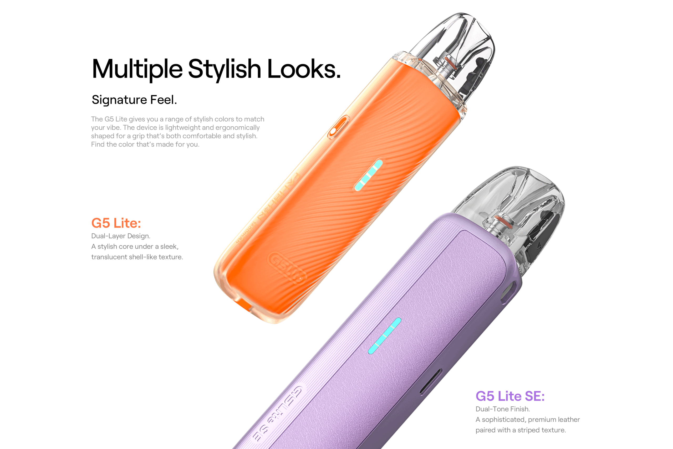 The UWELL G5 Lite Pod Kit is designed for users who value simplicity, reliability, and everyday comfort. Featuring a lightweight translucent PC body, it offers a modern look while remaining easy to carry. The built-in 1600mAh battery delivers long-lasting performance, reducing the need for frequent recharging. A 2mL pod capacity keeps refills straightforward, while the multi-level LED indicator clearly displays battery status. With adjustable airflow and up to 35W of power, this device provides a smooth and adaptable vaping experience.